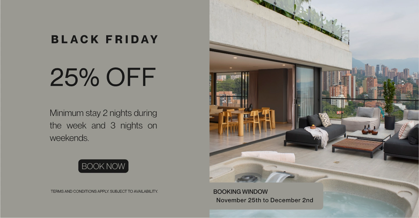 Discover our collection of thoughtfully designed residences and rooms in El Poblado, crafted in harmonious sizes from S to XXL.